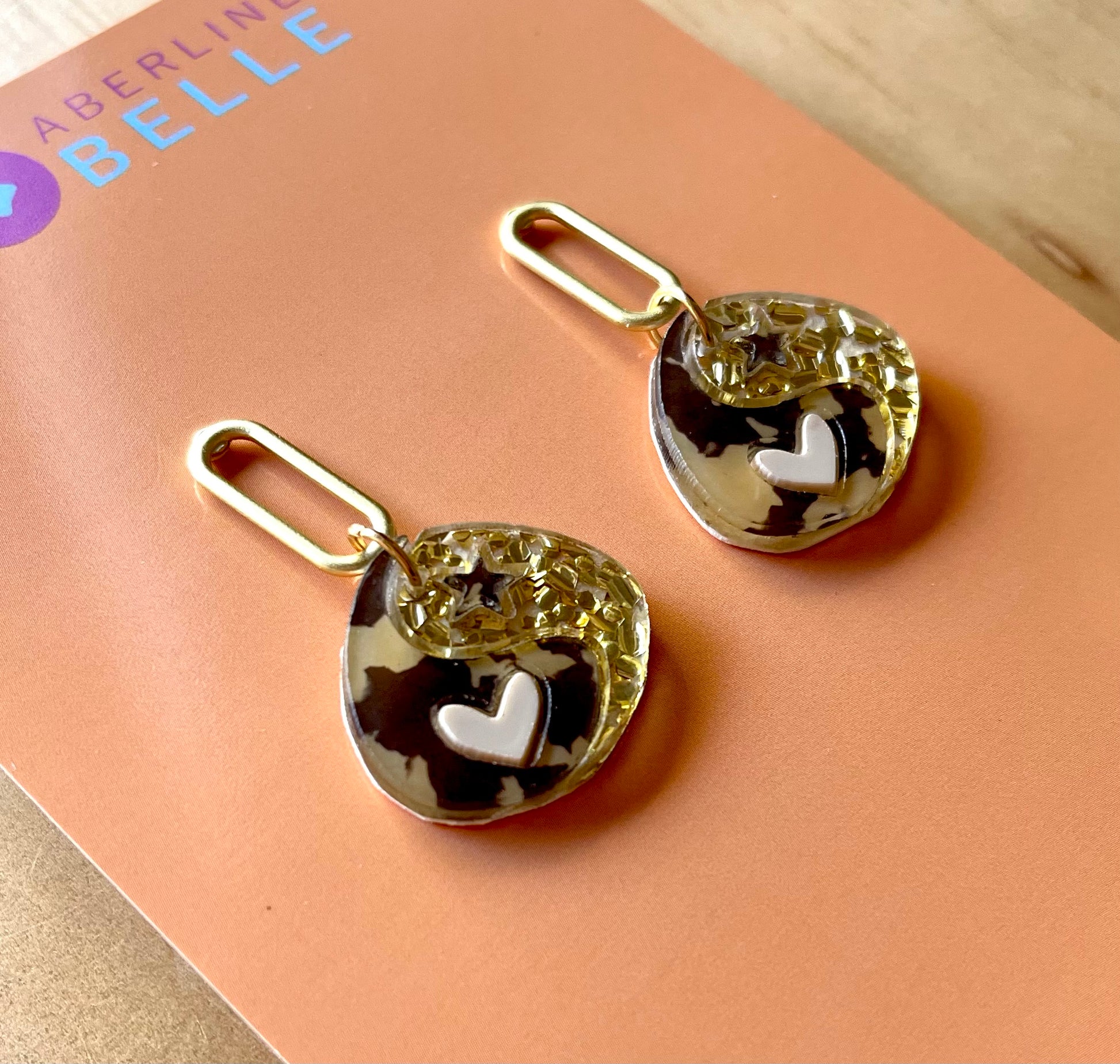- Acrylic pieces with leather backing.